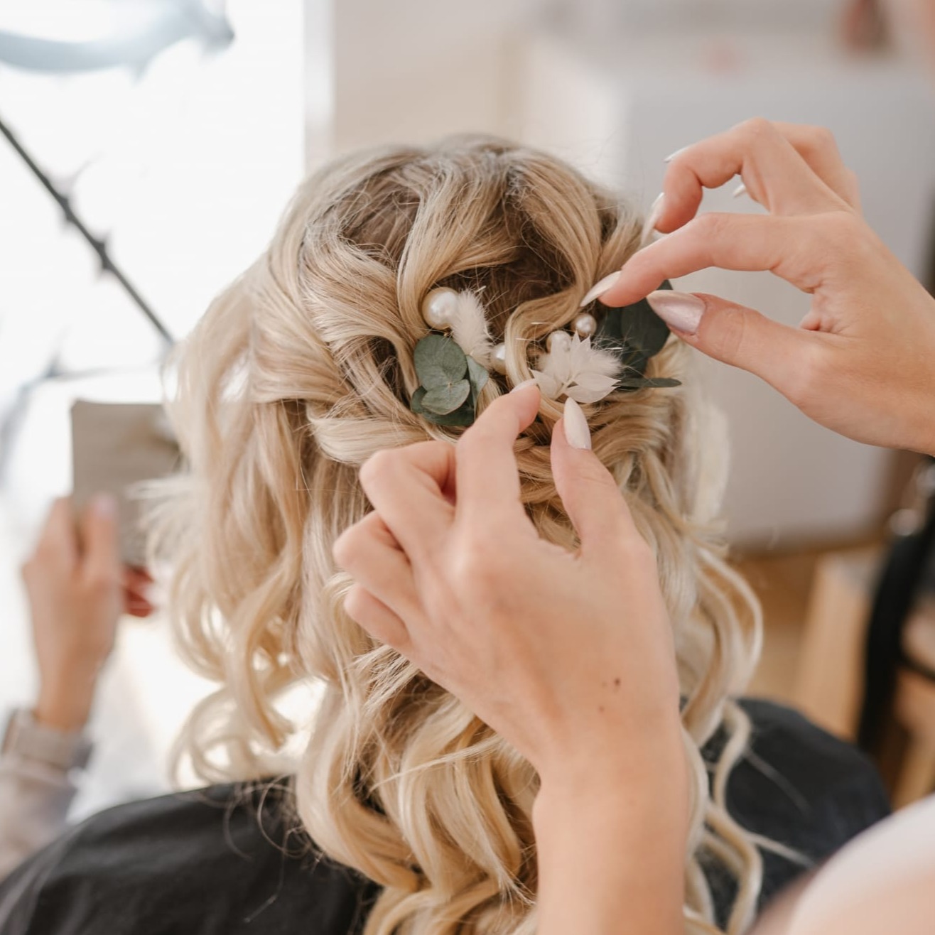 Ob Frisur oder Make-up, ich sorge für einen reibungslosen Ablauf und style auch gerne deine Gäste. So kannst du dich ganz entspannt auf deinen großen Tag freuen.